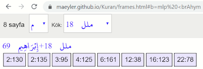 İbrahim ve millet kelimelerini Mucem'de birlikte arayınca 8 ayet buluyoruz: